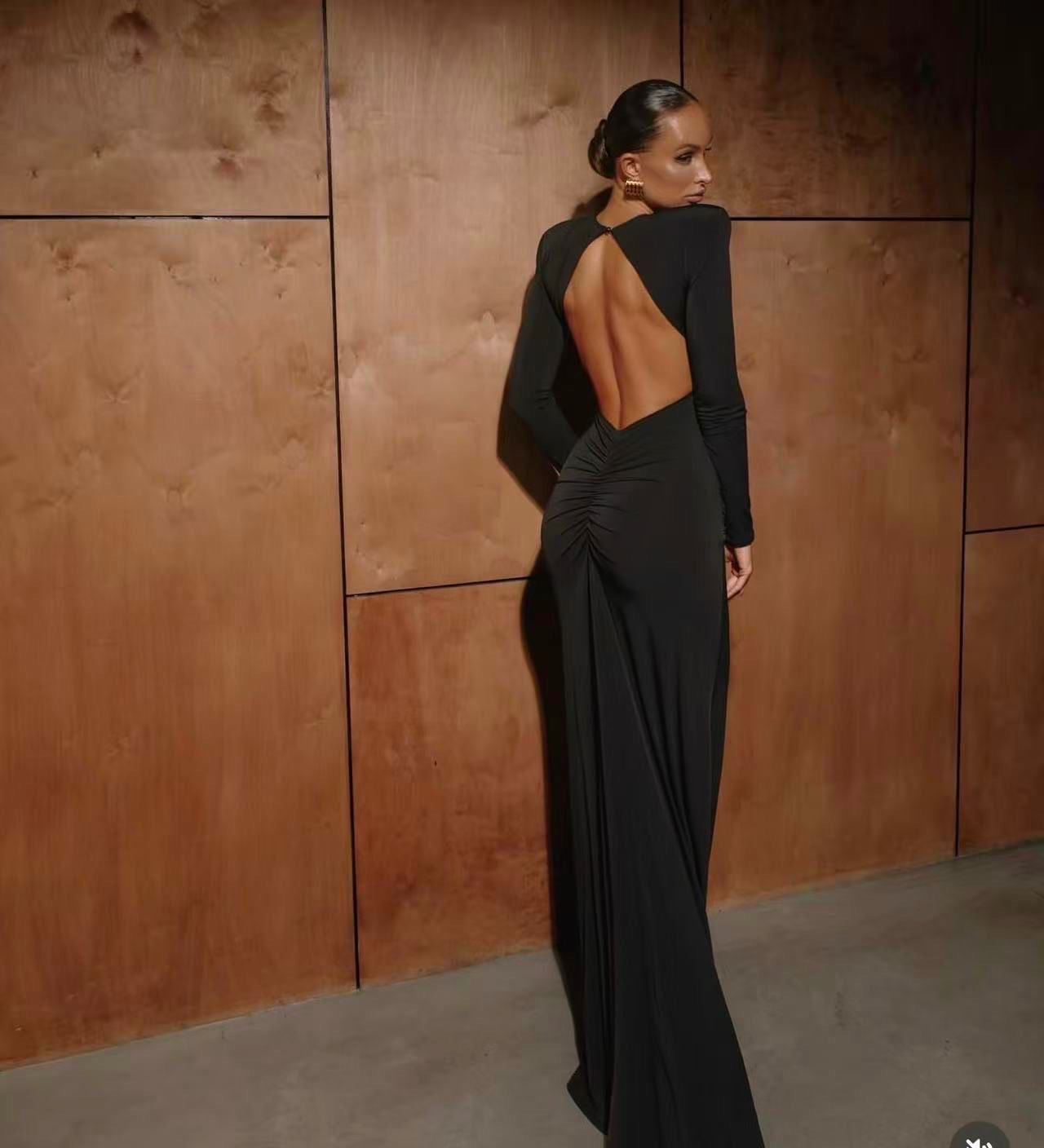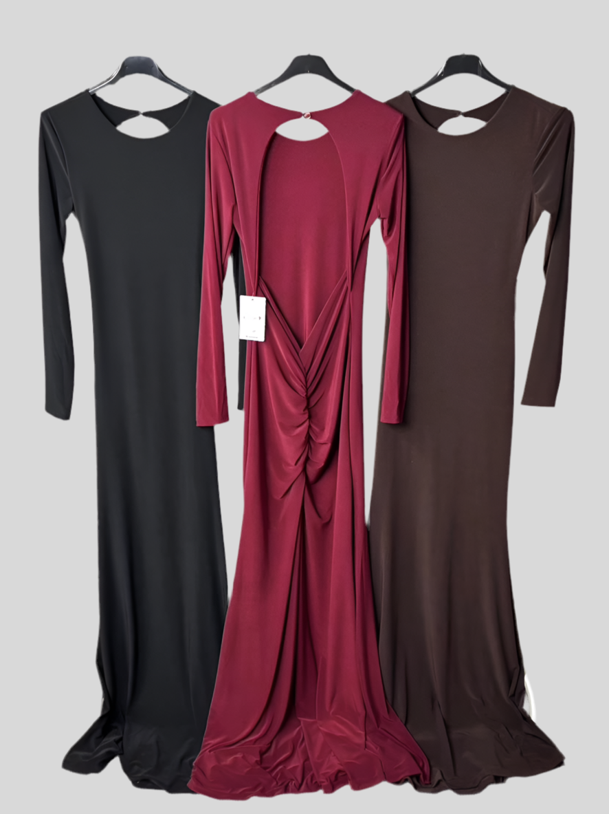 Abito con scollo sulla schiena e arriccio sul sedere per valorizzare la silhouette.