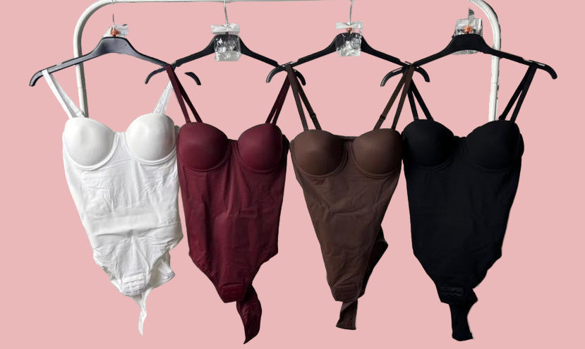 Body contenitivo con coppe imbottite e ferretto, effetto push-up.