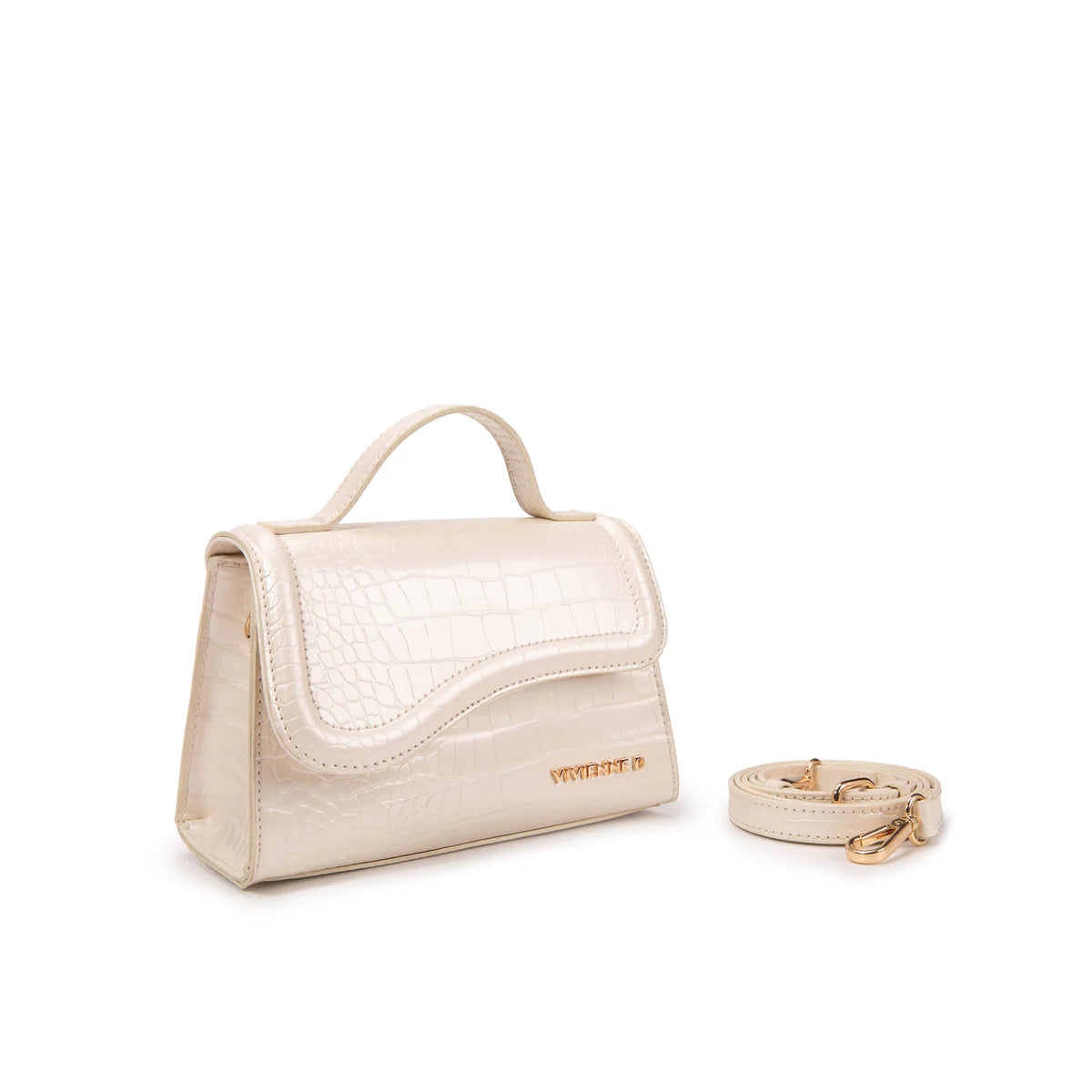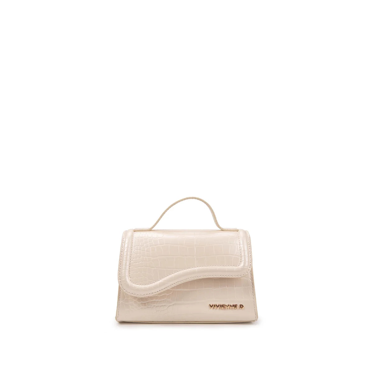Micro bag in ecopelle con logo VIVIENNE D finitura dorata. Lavorazione Effetto cocco. Chiusura con automatico. Piccolo manico in ecopelle. Tracolla in ecopelle regolabile con moschettoni.