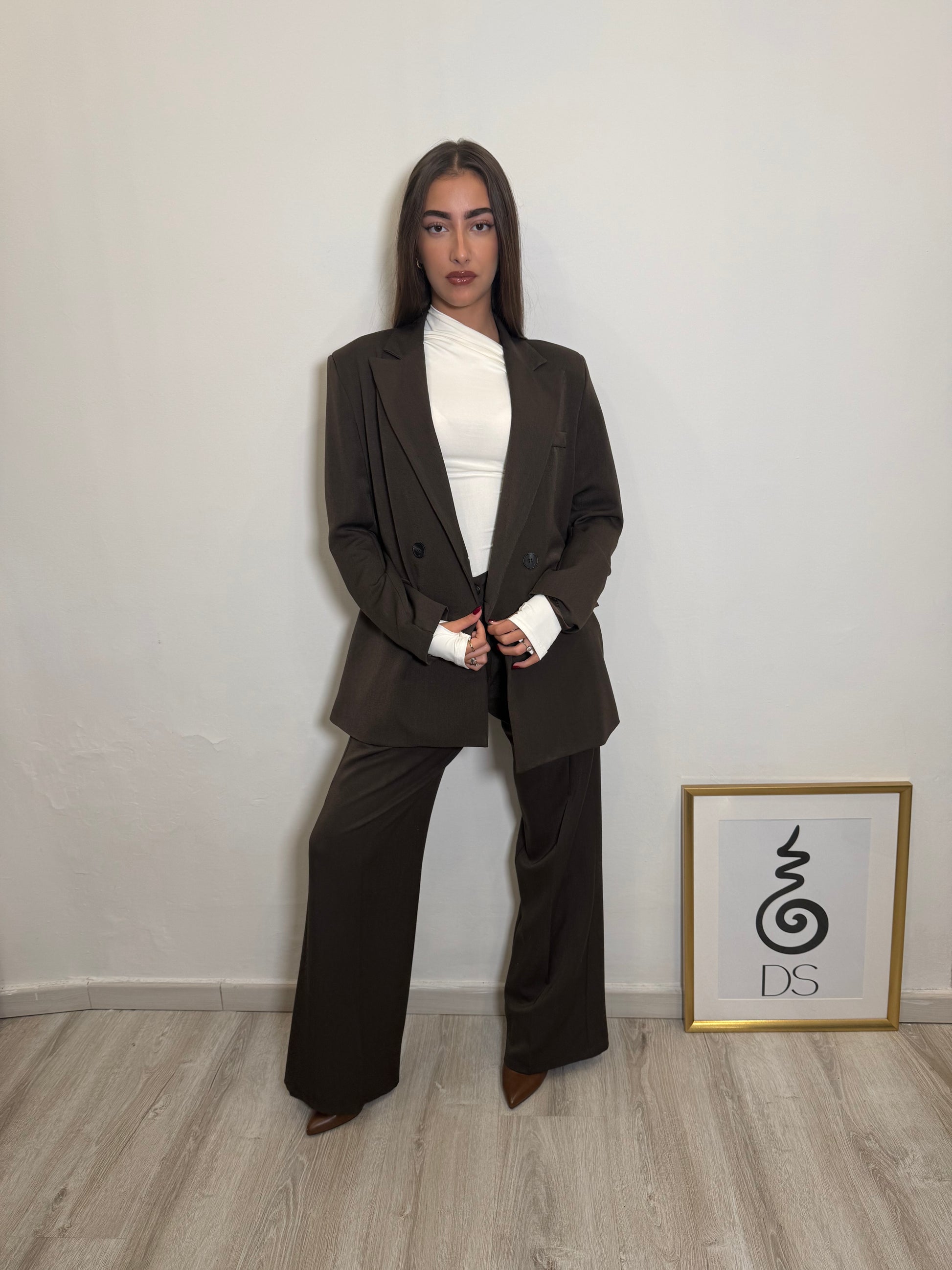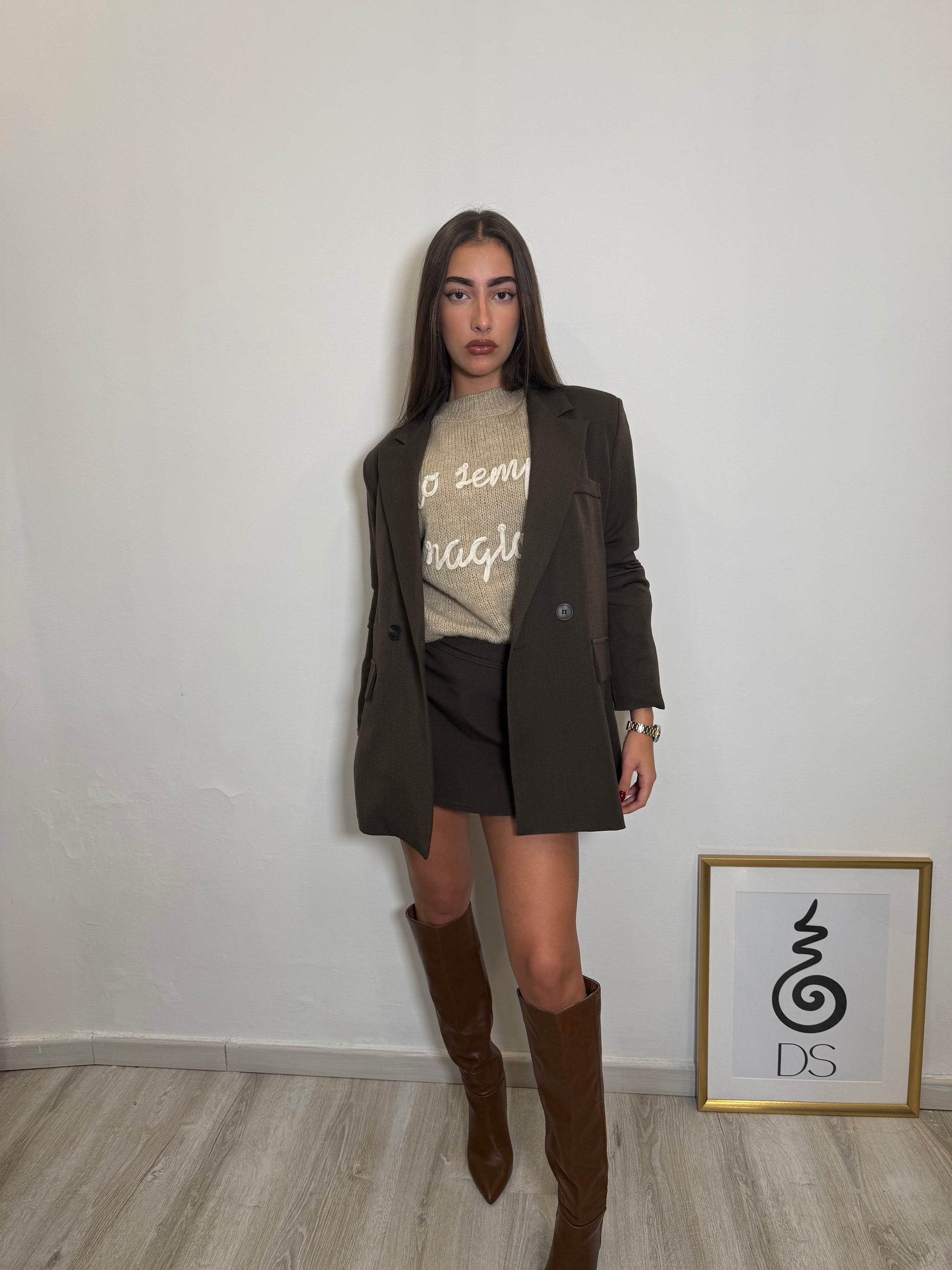 Giacca modello doppiopetto spalline interne con tasche finte ma Giacca con rever, e bottoni a chiudere.