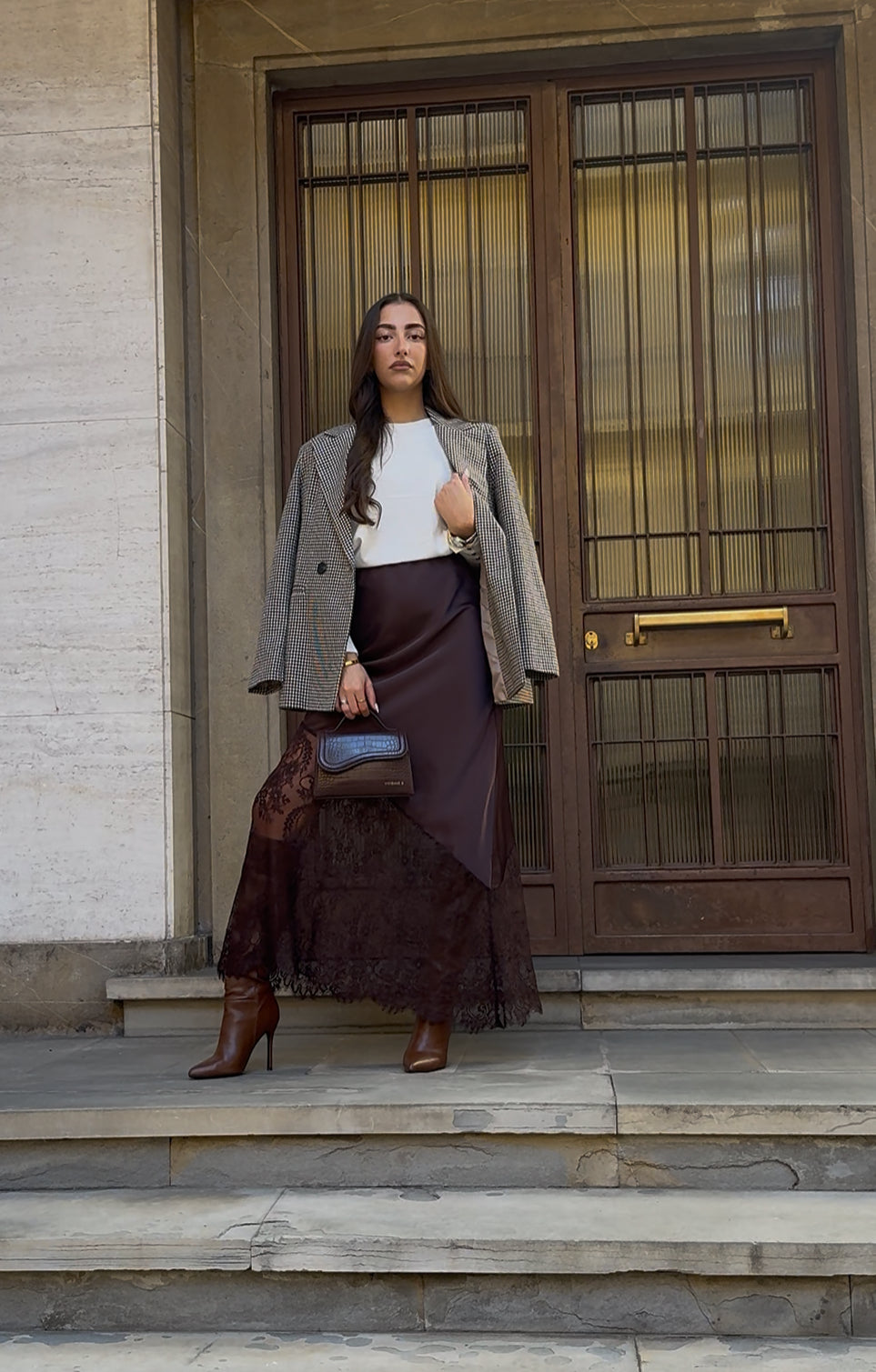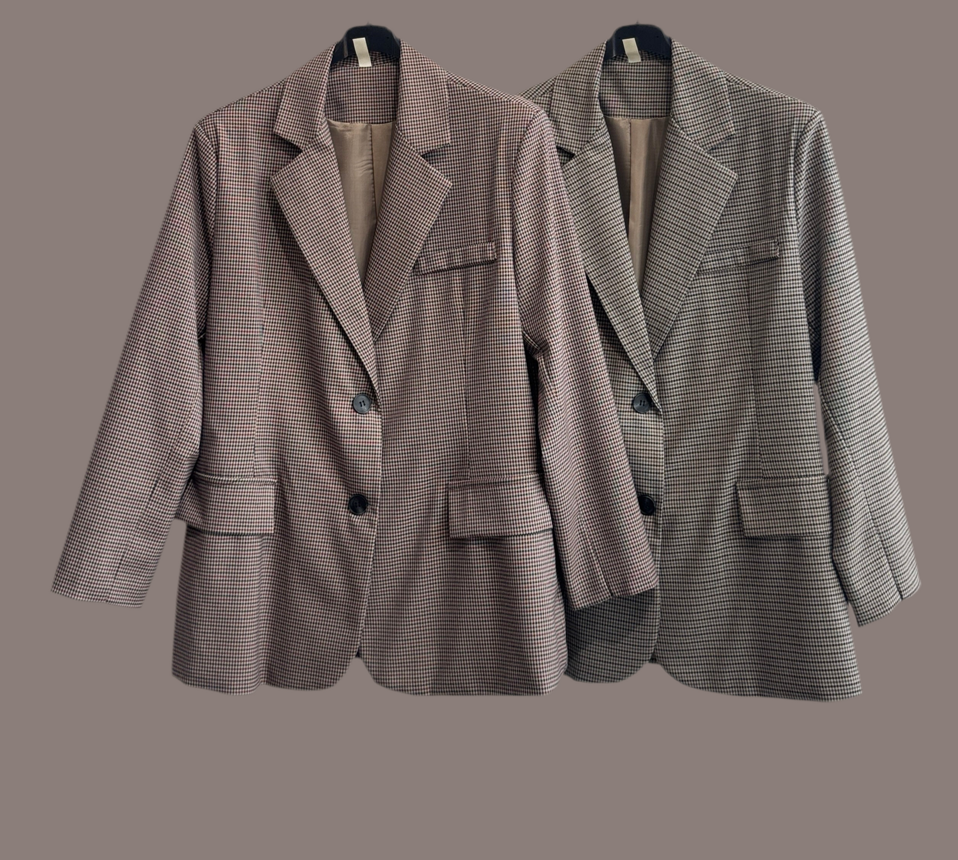 Giacca che presenta linea morbida, spalle strutturate e tasche frontali a filetto, per un effetto elegante ma contemporaneo. Fantasia micro pied-de-poule.