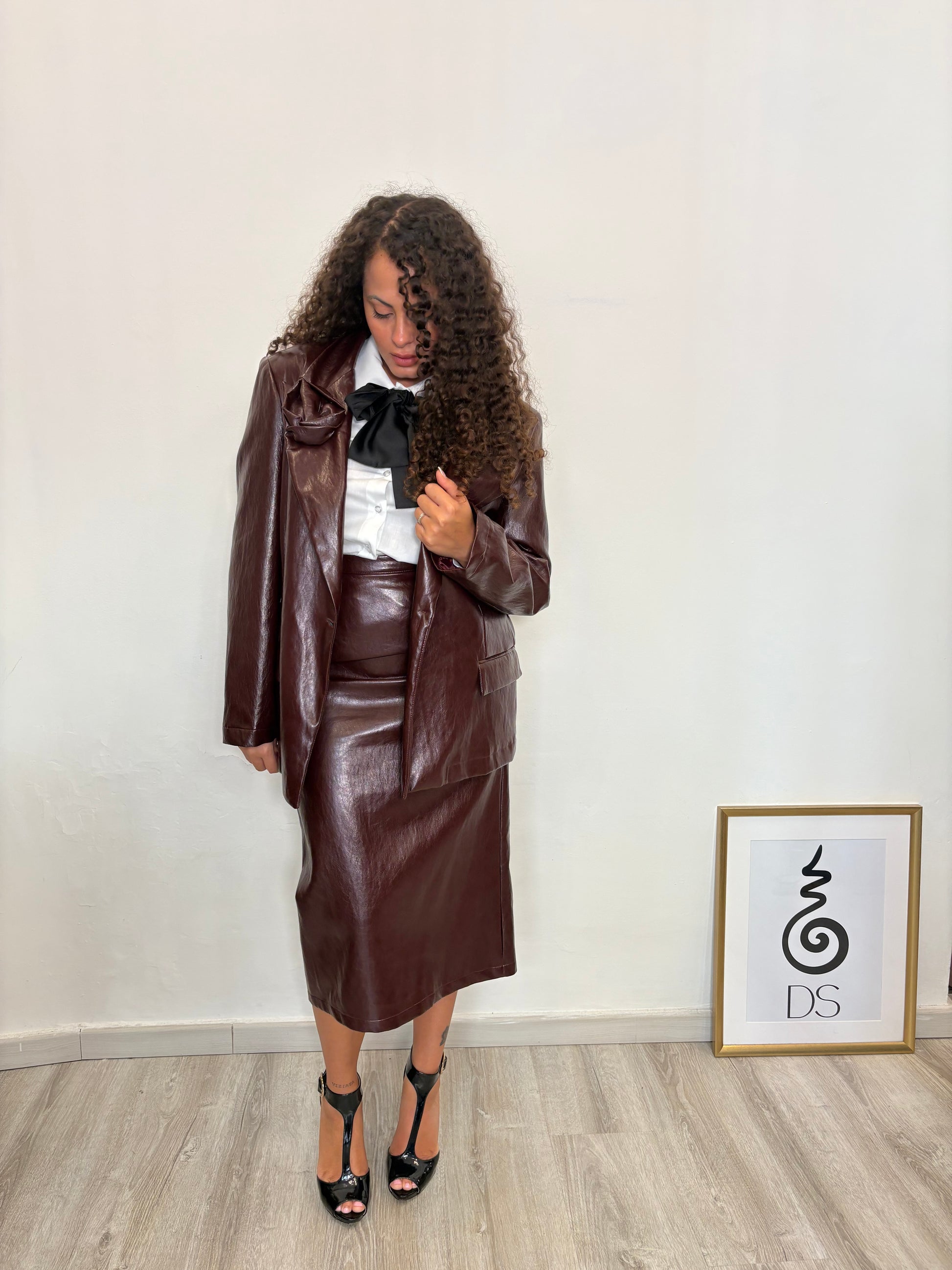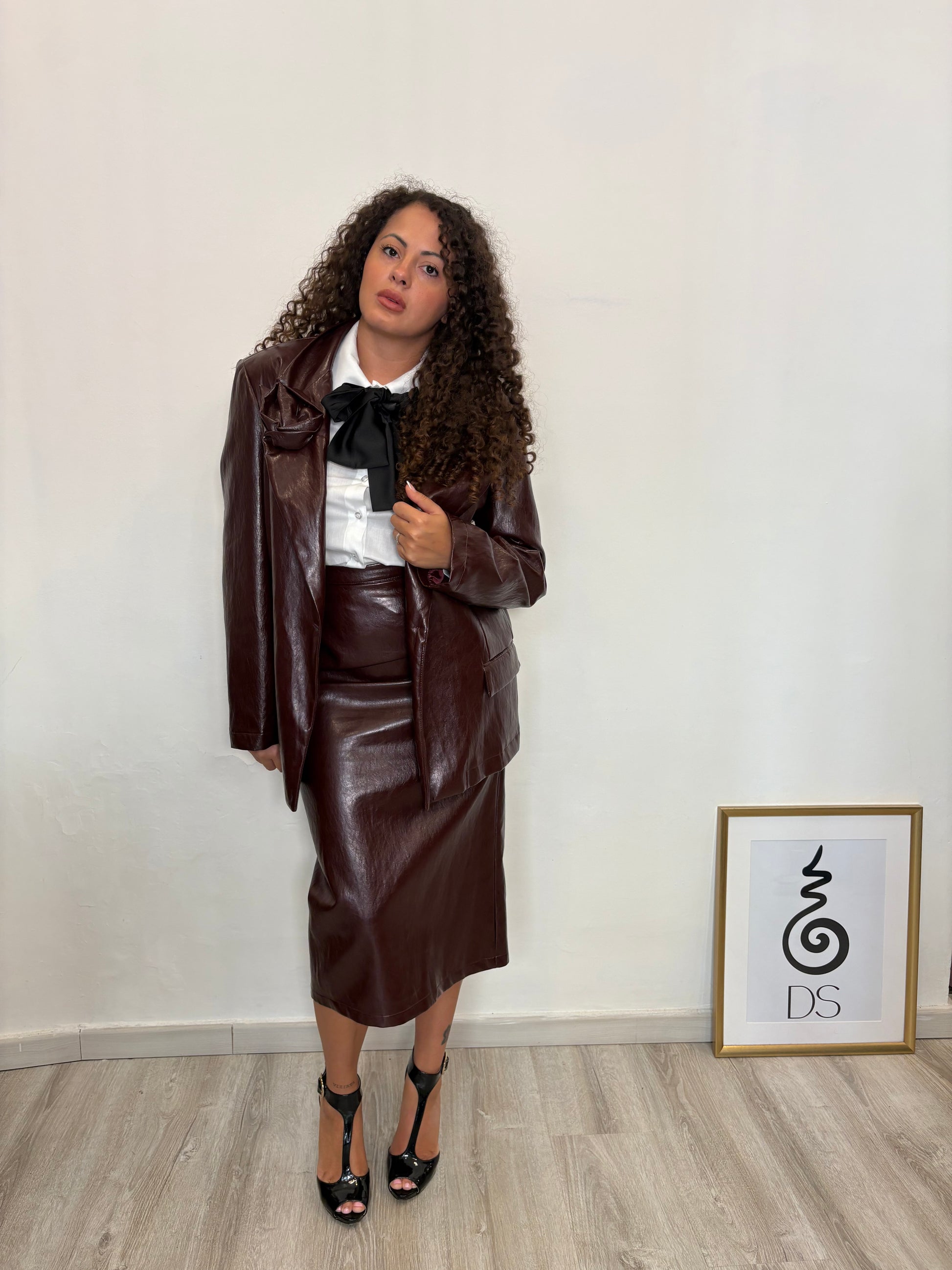 Giacca effetto pelle vinile con applicazione di fiore. Taglio morbido.