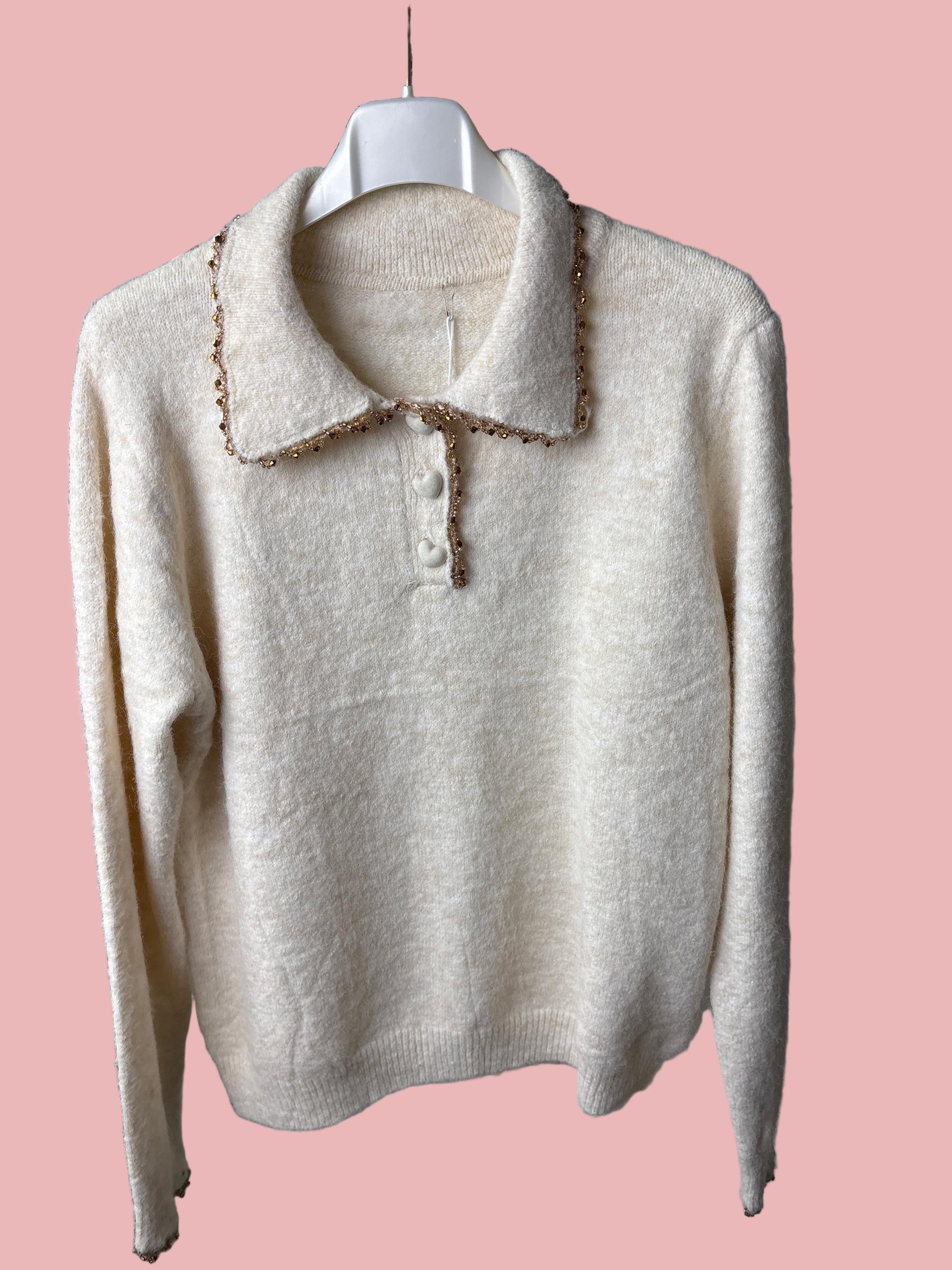 Maglione con colletto decorato. Raffinato e delicato, questo maglione dona un tocco chic anche ai look più semplici. Realizzato in filato morbido e caldo, è impreziosito dal colletto con bordo decorato e bottoncini frontali.